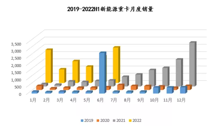 6月新能源重卡售出2443辆,同比增长488%,环比增长34%。从2021年2月起到现在,新能源重卡实现17个月同比连续上涨,形成“17连涨”。