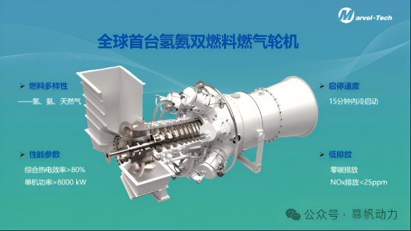 历经五年潜心研发,慕帆动力隆重推出的氢氨燃机,其核心优势表现在:一、燃料多样性,实现氢、氨、天然气自由切换,实现供电不停;二、高性能参数,综合热电效率大于80%,单机功率大于8MW;三、启停速度快,15分钟内冷启动;四、低排放,零碳排放,NOx排放小于25ppm。