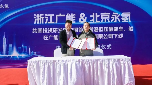 作为在智能装备制造与氢能储能技术领域各具优势的企业,广能智能与永氢储能的此次合作,是技术、制造与市场资源的深度整合。双方将聚焦于常温低压氢能技术在车、船等交通工具上的研发、制造与商业化应用,致力于打造安全、高效、经济的氢能交通解决方案,推动绿色低碳出行。