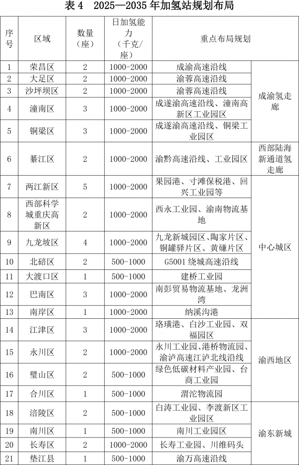 重庆市经济和信息化委员会关于印发《重庆市加氢站行业发展规划(2025—2035年)》的通知