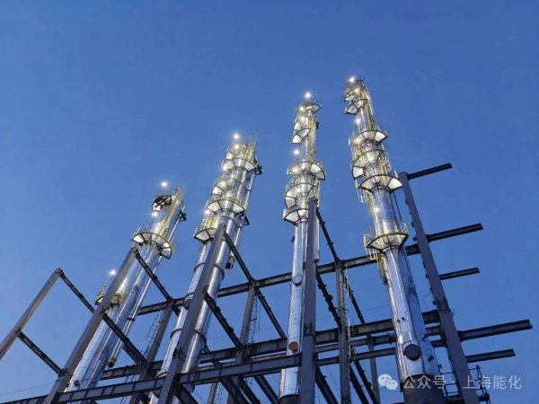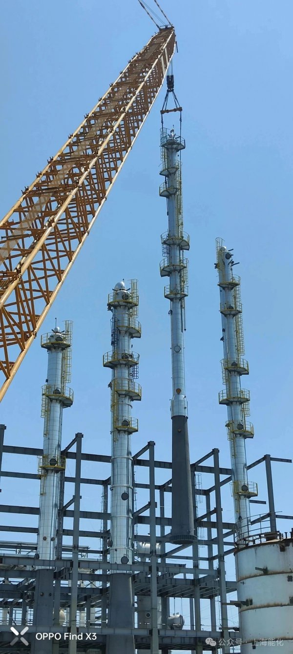 8月17日至20日,四台精馏塔在完成“穿衣戴帽”后成功吊装到位,顺利实现“塔起灯亮”。