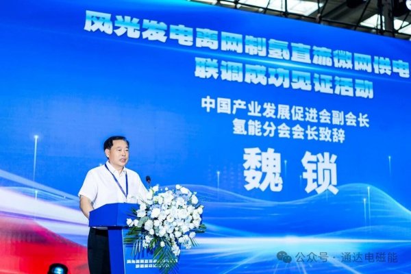 中国产业发展促进会副会长兼氢能分会会长魏锁在致辞中指出,当前氢能产业正处于技术突破向规模化应用迈进的关键阶段,通达电磁能此次研发的“风光发电离网制氢直流微网供电系统”,为行业破解新能源消纳与绿氢生产难题提供了创新路径。他强调,要想推动氢能产业高质量发展,一方面需加速核心技术迭代,聚焦系统稳定性优化、成本控制等关键方向,让创新成果更快适配多元化应用场景;另一方面要深化各方协作,行业协会需搭建资源对接平台,科研院所应持续输出技术支撑,企业则要主动联动上下游,形成“技术研发-成果转化-产业落地”的闭环。魏会长特别提到,期待以此次系统联调成功为契机,更多企业能加入氢能技术创新与产业实践阵营,共同攻克行业共性难题,推动我国氢能产业在全球竞争中占据更核心地位,为实现“双碳”目标与能源结构转型贡献集体力量。