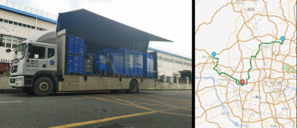 场景描述:本运输线路以佛山南海区汽车配件生产基地为核心枢纽,构建了广州增城、佛山南海及肇庆四会等广佛肇区域性汽车配件物流网络。基于客户订单需求,18吨氢能翼展车可实现单日单车2-3次高效往返运输,日均运营里程200-350公里,有效串联起广佛肇三地汽车配件产业集群。