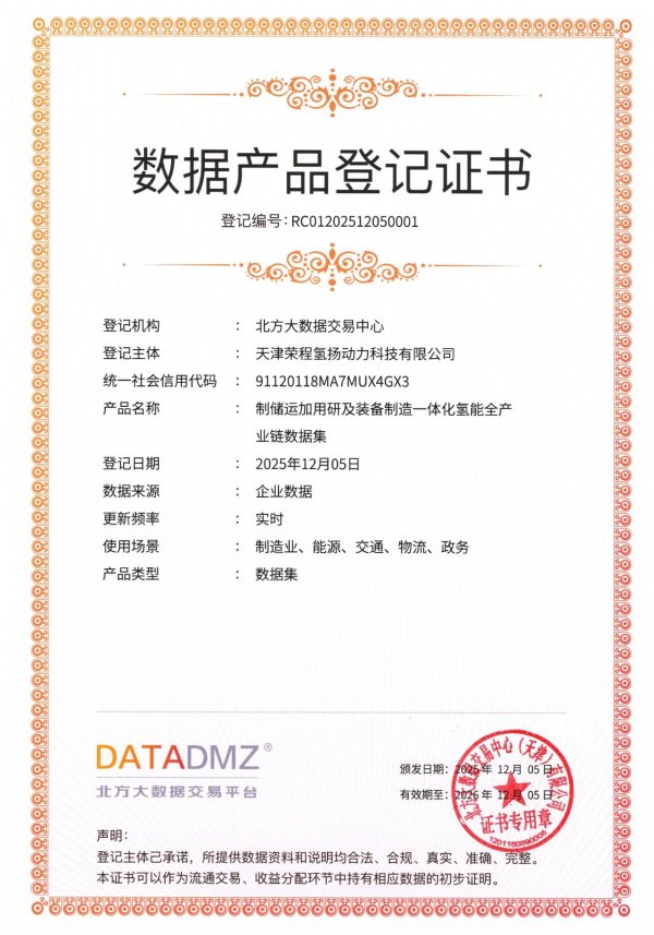近日,荣程新能集团旗下荣程氢扬动力科技有限公司数据资产化取得重要突破,其“荣程氢能大数据平台”产生的“制、储、运、加、用、研及装备制造一体化氢能全产业链数据集”,成功完成数据资产入表,成为全国首例氢能行业全产业链数据集入表案例。该数据集同步在北方大数据交易中心完成产品登记,荣程氢扬动力获得数据商认证。这标志着荣程新能集团在业内率先实现“入表、登记、认证”一体化实践,树立氢能行业数据资产化标杆。
