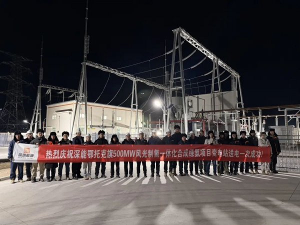 12月27日,作为国家能源局能源领域氢能试点首批项目的深能鄂托克旗505MW风光制氢一体化合成绿氨项目,实现首批200MW风电机组顺利并网。